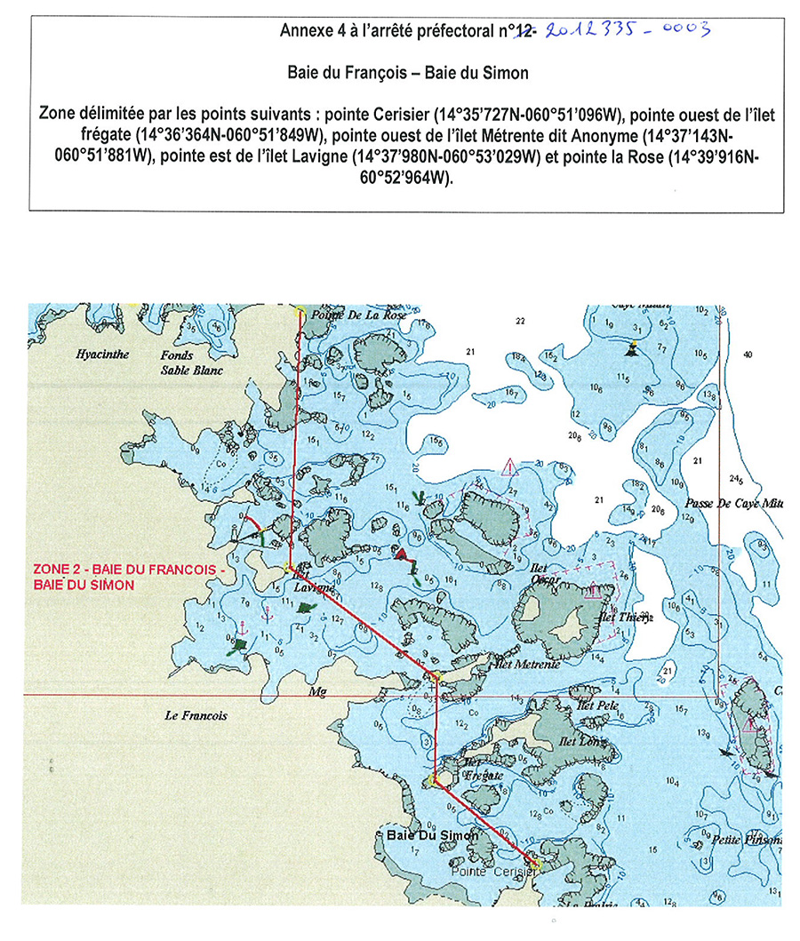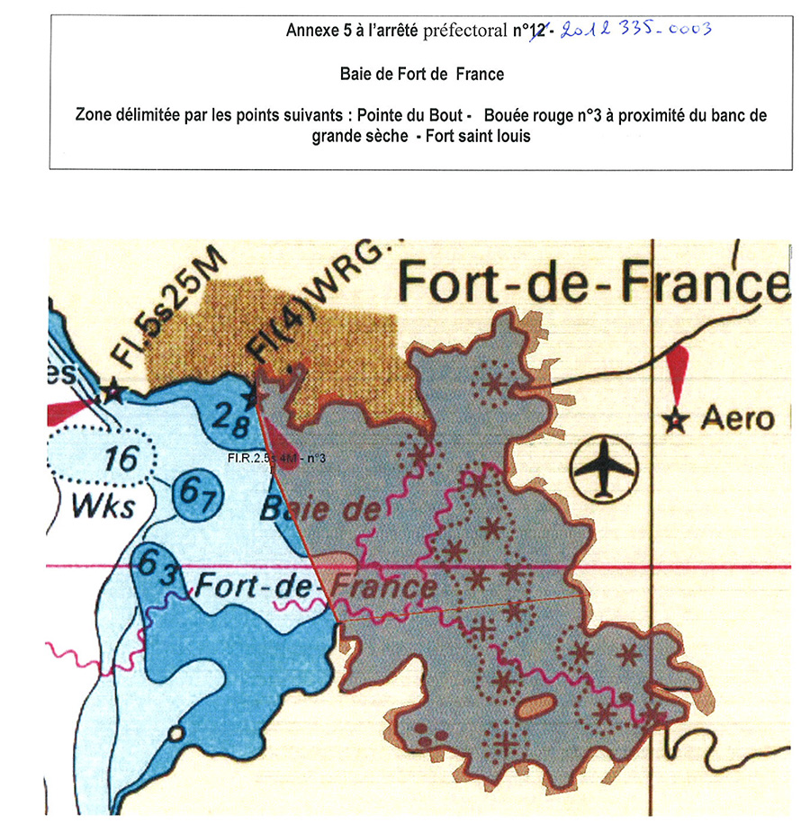 Texte réglementant le mouillage des navires le long du littoral de la Martinique en dehors des zones régulées par les autorités portuaires